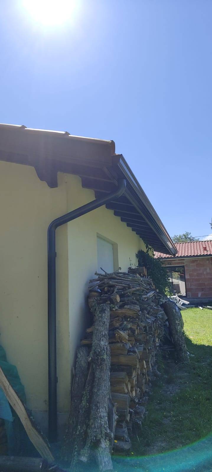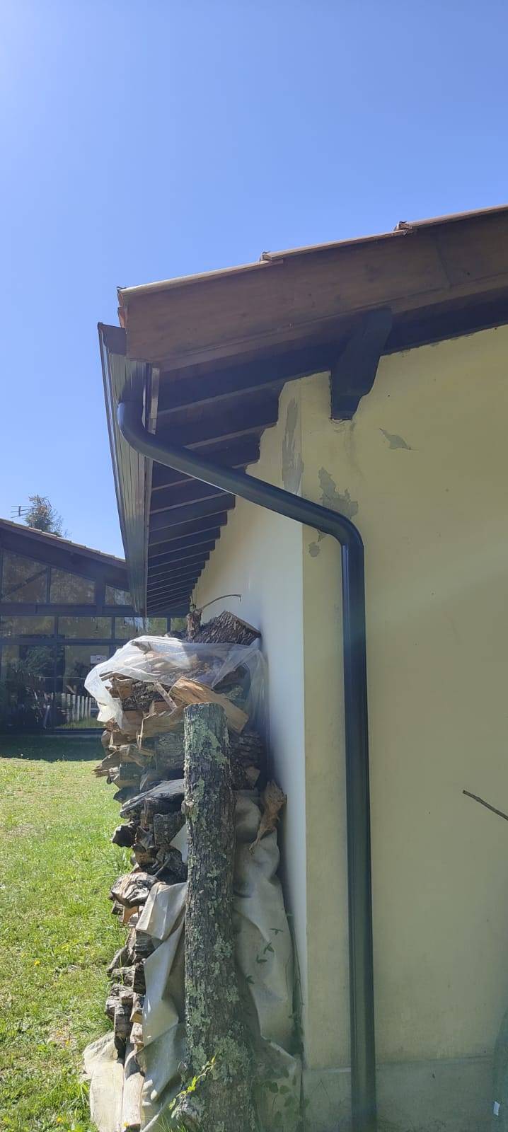 La gouttière bleu ardoise (BA6) Niagara, sélectionnée pour ce chantier, est reconnue pour sa durabilité et sa résistance exceptionnelle aux intempéries, offrant une solution fiable pour la gestion efficace des eaux pluviales. Avec son design élégant et sa teinte distinctive, cette gouttière ajoute une touche de sophistication à la structure du bâtiment, tout en assurant une évacuation efficace des eaux de pluie. De plus, les descentes de 80x100 complètent parfaitement le système, facilitant un débit fluide et constant, même pendant les fortes précipitations.