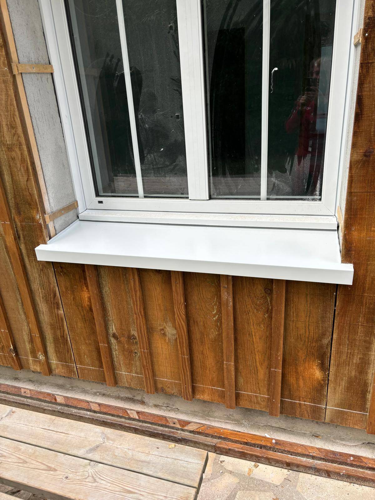 L'appui de fenêtre en aluminium que nous avons conçu s'intègre parfaitement à l'architecture de la maison, offrant une finition soignée et moderne. Le choix de l'aluminium, matériau durable et résistant aux intempéries, assure une longévité exceptionnelle et nécessite très peu d'entretien. La couleur blanche ajoute une touche de pureté et de luminosité, apportant une véritable plus-value Des solutions sur-mesure pour un résultat impeccable