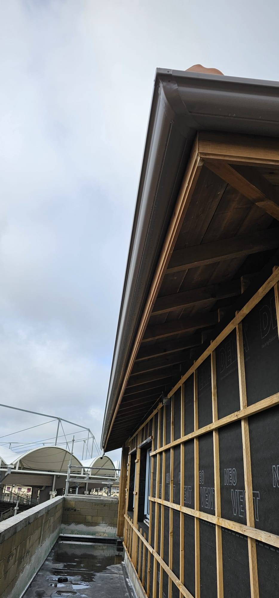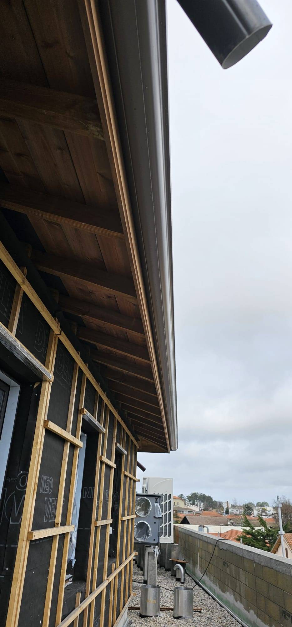 Qu'il s'agisse de l’installation de gouttières, de descentes d'eaux pluviales, de sous-faces de toit ou d'habillages de bandeau en aluminium couleur bronze, nous intervenons avec précision et expertise pour garantir une installation harmonieuse et optimale.