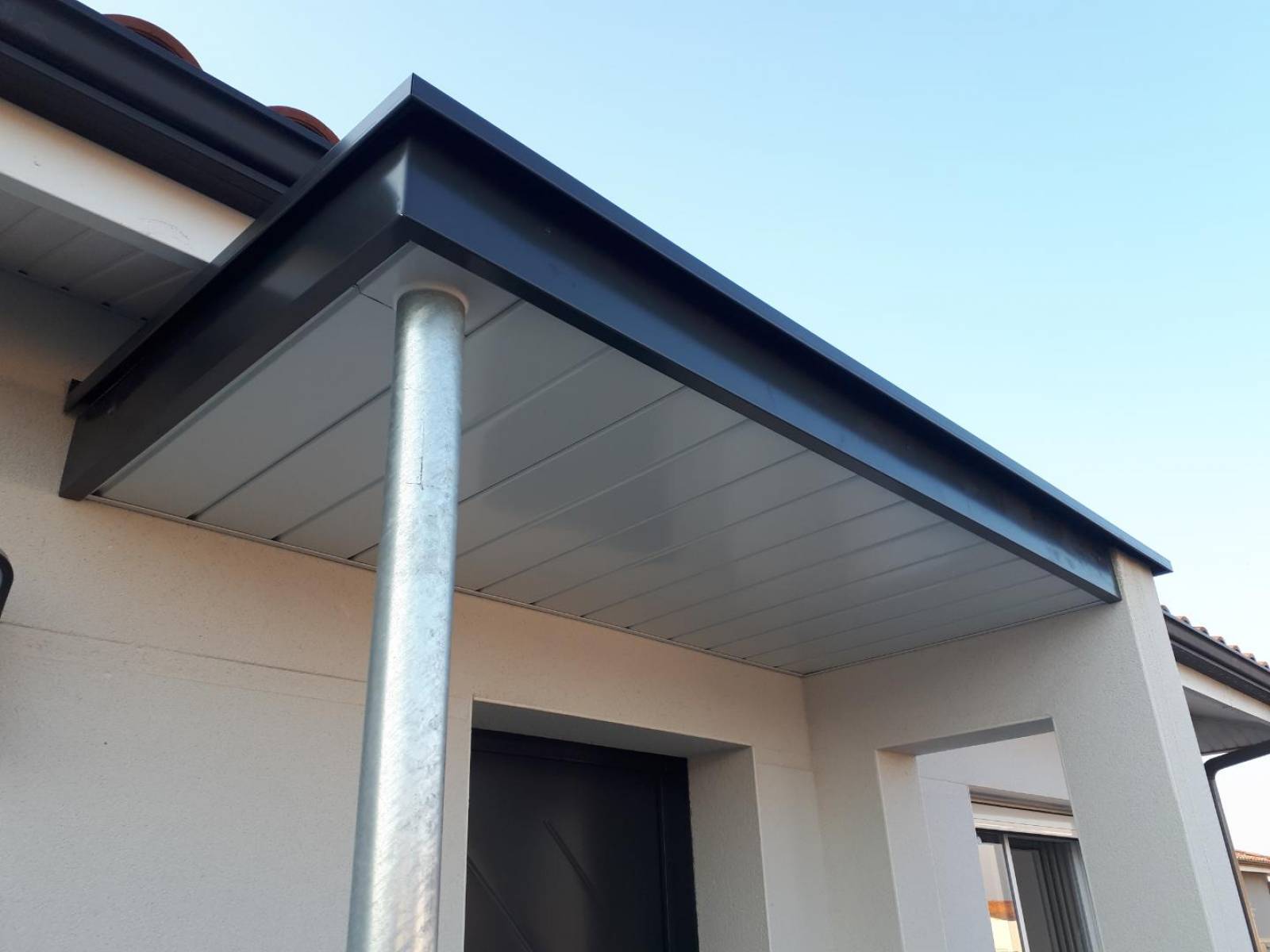 Le processus d'habillage a consisté à recouvrir la surface en béton de la casquette avec des feuilles d'aluminium gris anthracite. Nous avons travaillé avec précision pour assurer que chaque feuille soit parfaitement ajustée et fixée en place. Le résultat final est une surface lisse et uniforme qui s'intègre parfaitement à la construction.