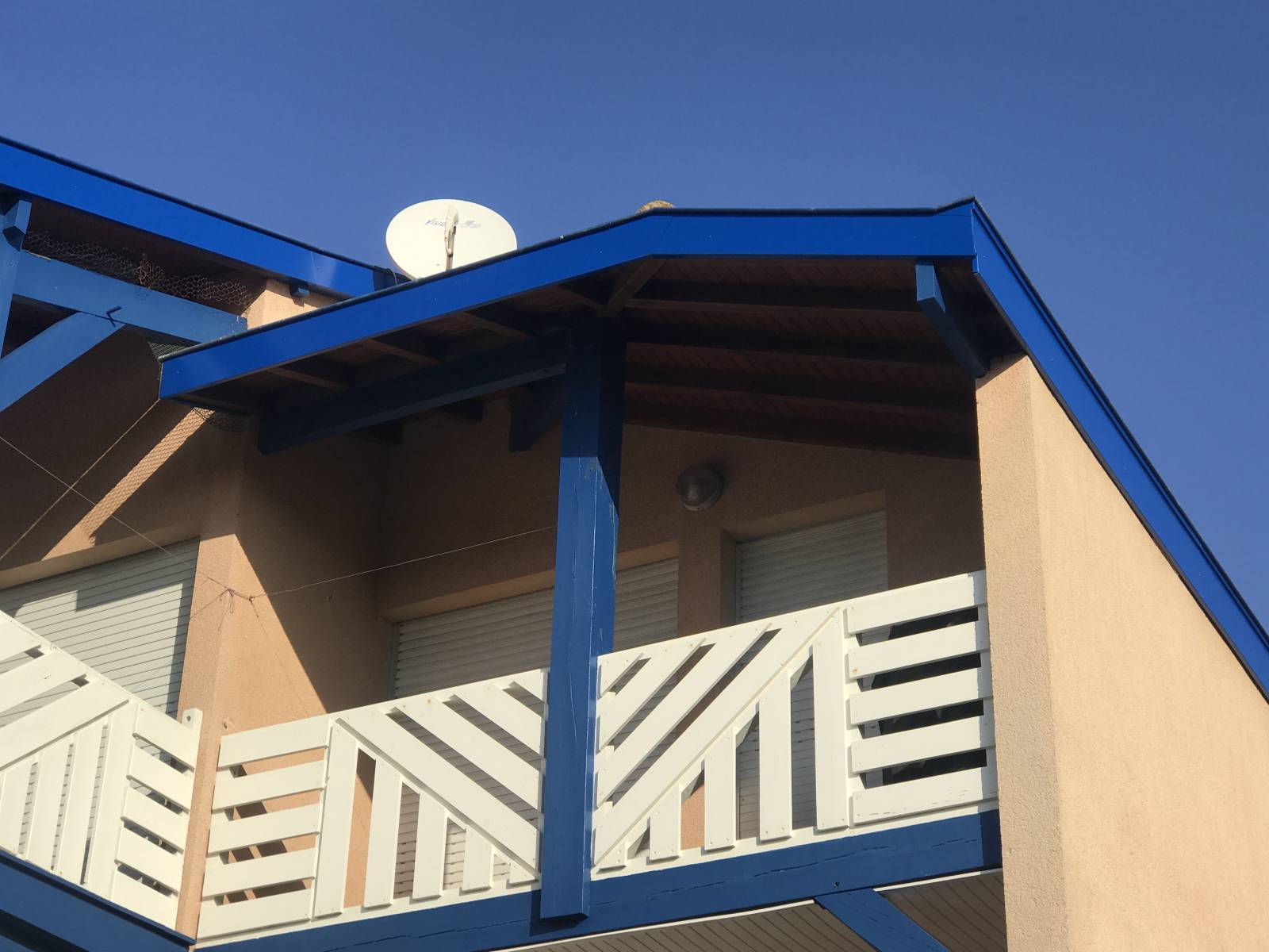 Notre mission, se situant cette fois-ci à Sanguinet nous a mené vers une résidence toute coquette sur laquelle il nous a été demandé de faire poser une gouttière ainsi qu’un habillage en bandeau bleu en guise de remplacement des anciennes installations, très abîmées par le temps. Ces dernières, ne parvenaient plus à filtrer correctement les eaux pluviales et mettaient en péril toute l’étanchéité de la maison.