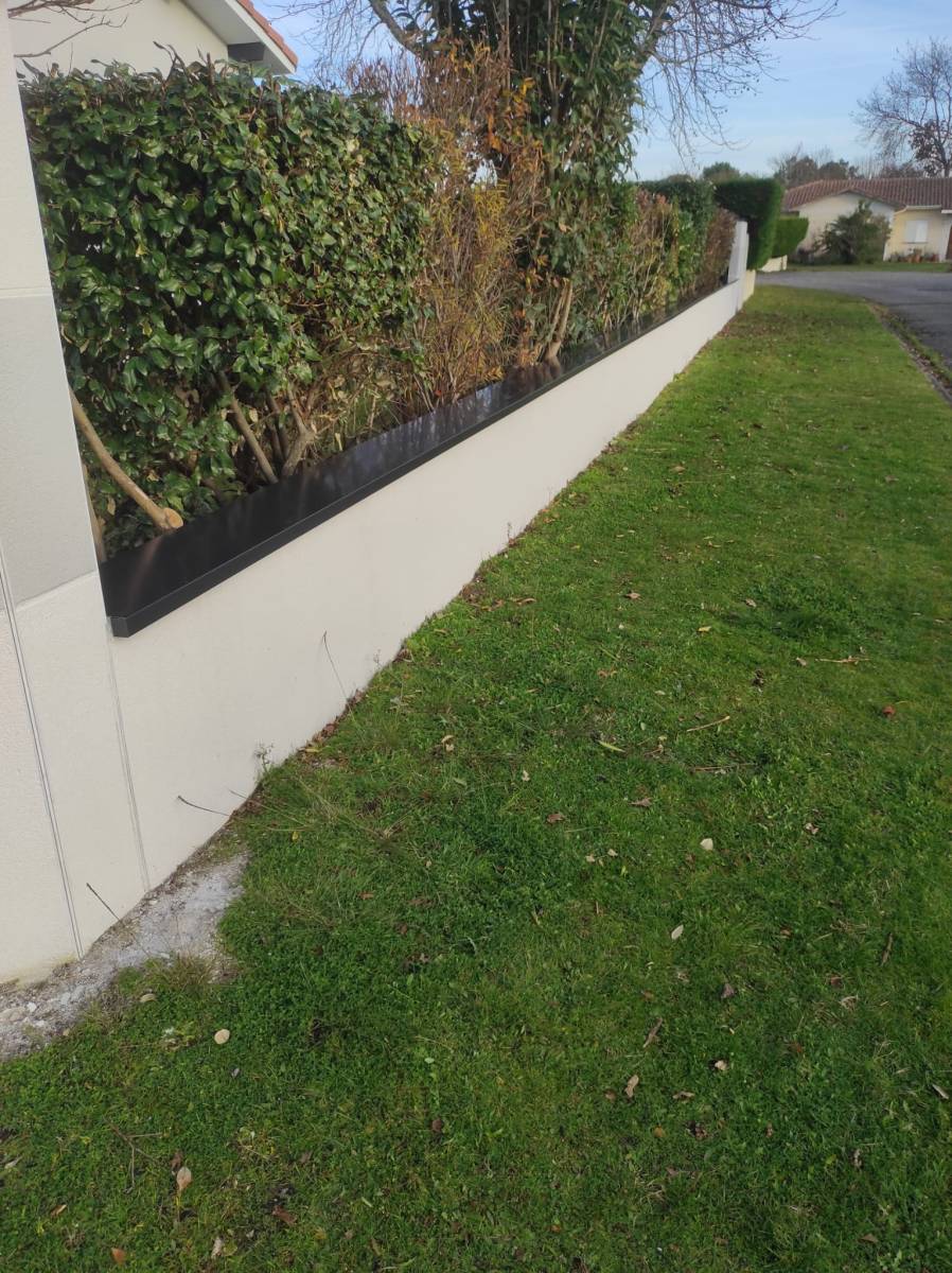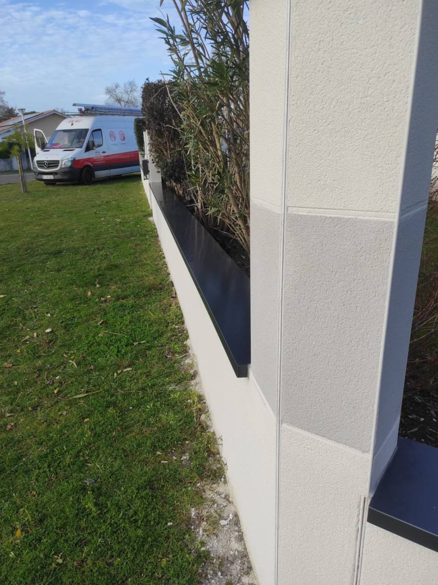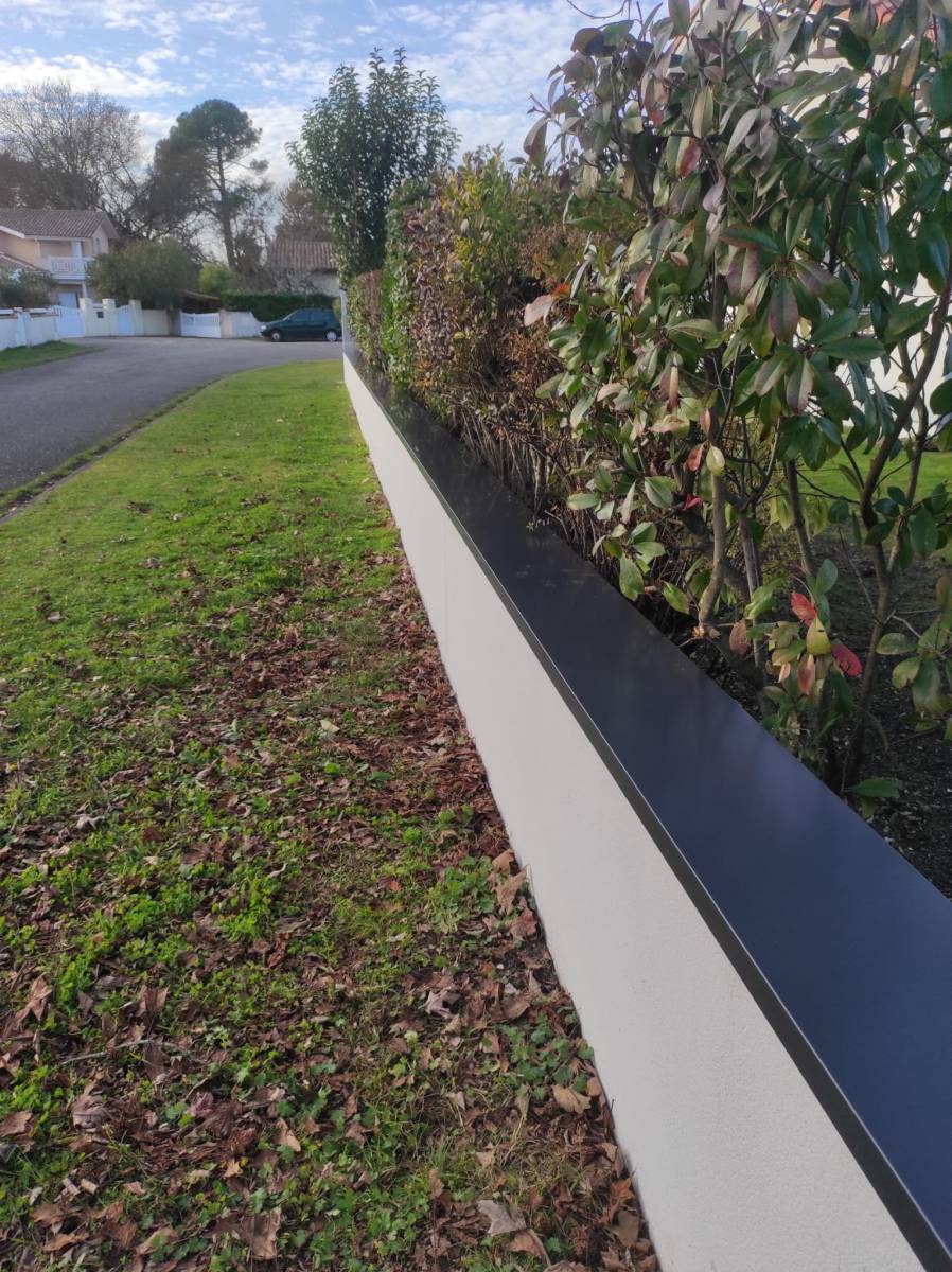 Les couvertines ne sont pas qu'un simple élément de finition. Elles protègent vos murs contre les intempéries tout en offrant une allure nette et moderne. Ici, la teinte bleu ardoise ne se contente pas de protéger, elle crée une harmonie visuelle parfaite avec l’environnement de Biscarrosse, entre modernité et sobriété.