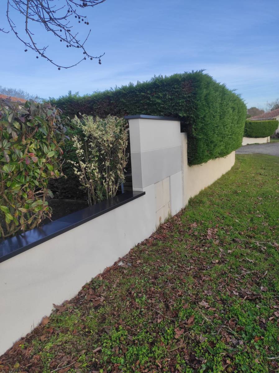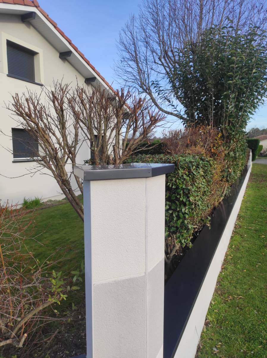 Ce chantier à Biscarrosse témoigne de notre expertise dans l’association de l’esthétique et de la fonctionnalité. Les couvertines et les chapeaux de poteaux couleur bleu ardoise montrent qu’il est possible de conjuguer protection et design dans un projet bien réalisé.