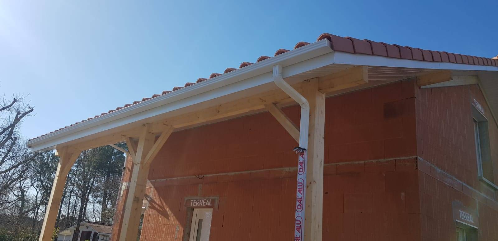 Mais l'esthétique n'est pas le seul avantage. En optant pour cet habillage bandeaux blanc et ces gouttières de couleur krèmdelè, vous améliorez également la fonctionnalité de votre maison. Nos gouttières, fabriquées selon les standards DAL'ALU, assurent une évacuation efficace des eaux pluviales, préservant ainsi la structure et la longévité de votre bâtiment.