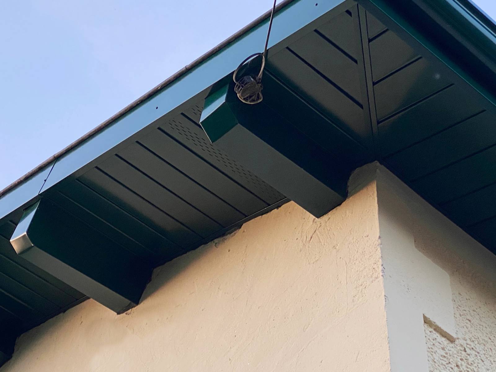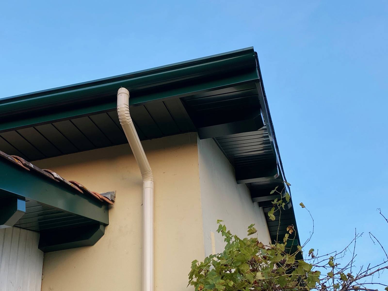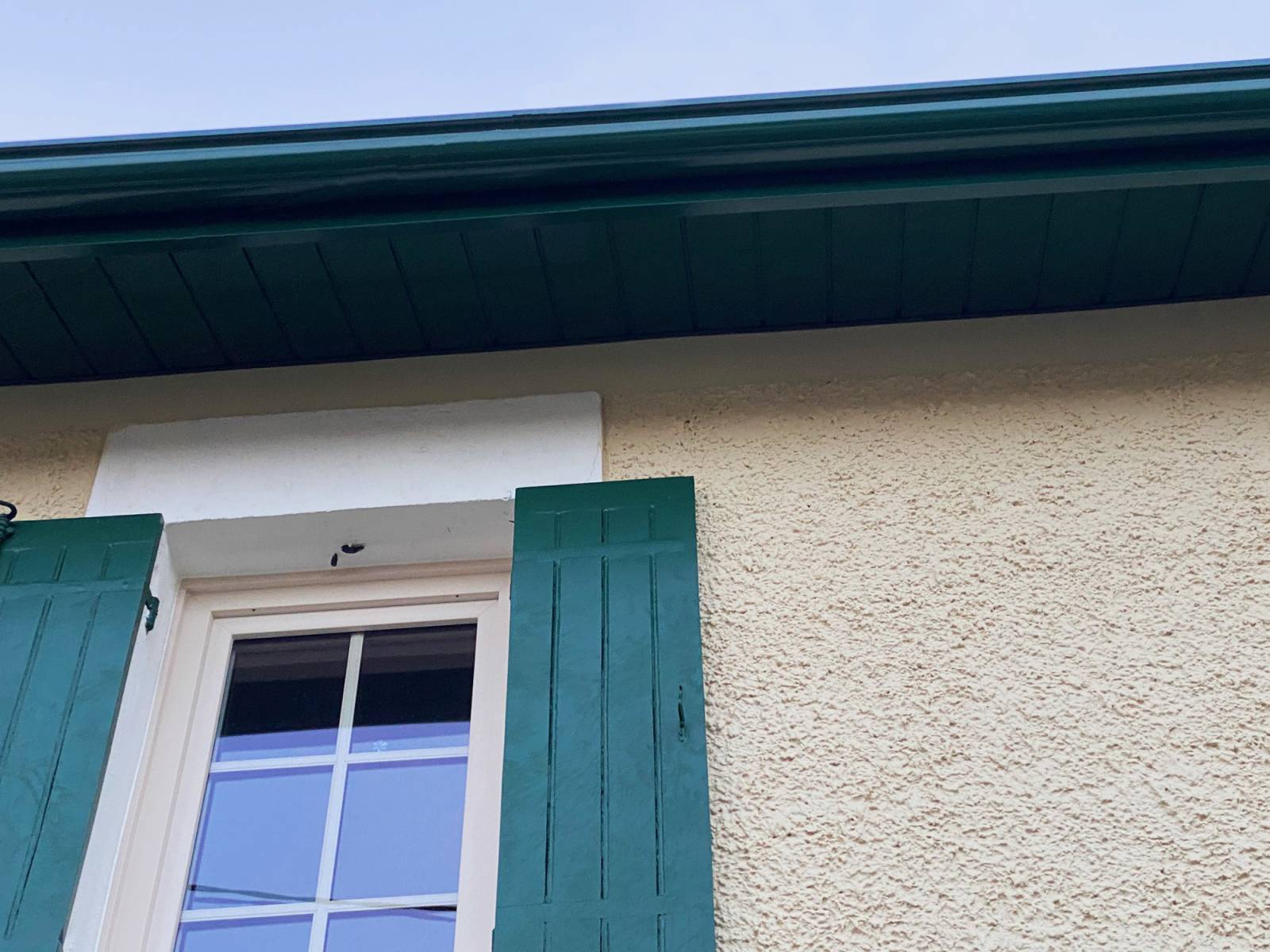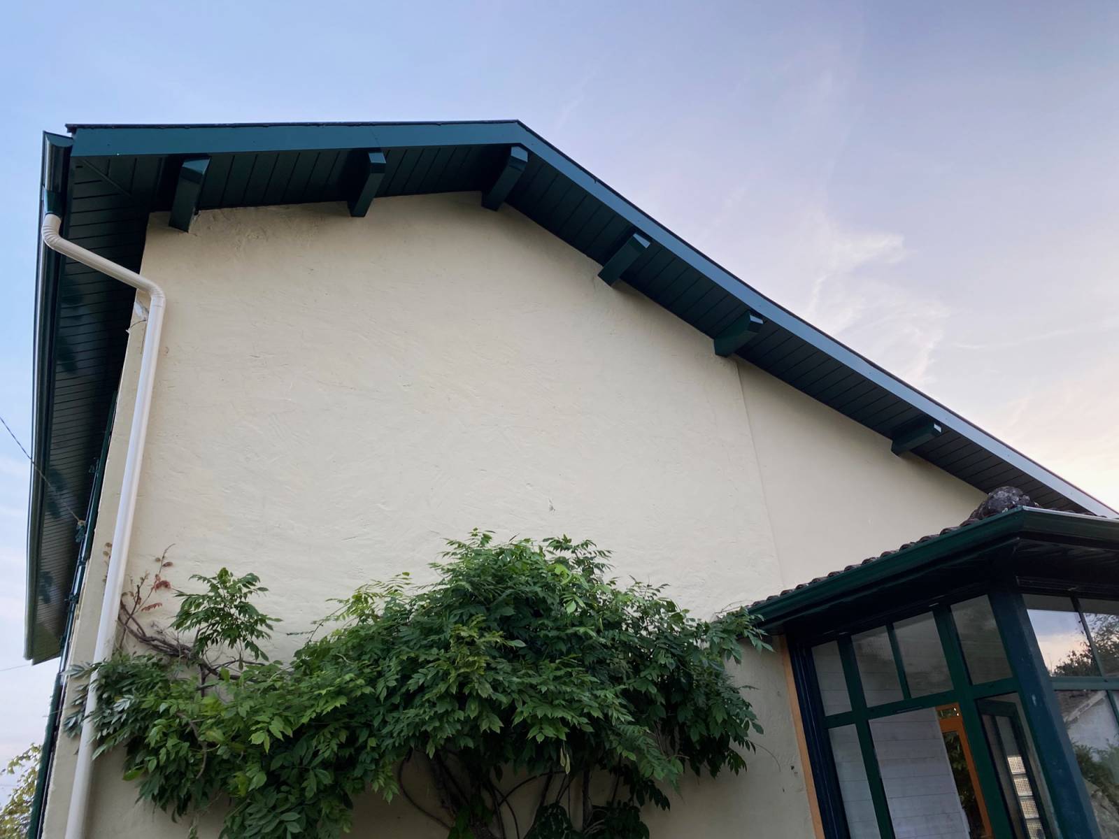 L'entreprise Alu Gouttières Bisca, spécialisée dans les travaux de rénovation en aluminium, a utilisé la vaste gamme de teintes offertes par la marque Dal'alu pour créer une harmonie parfaite sur la façade de cette maison. Les sous-faces, bandeaux et tête de panne ont été rénovés en aluminium "vert sapin", apportant une touche de fraîcheur à l'extérieur.