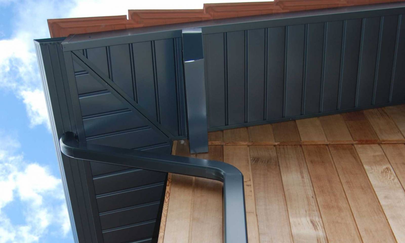 Lambris alu et des gouttières Niagara bleu ardoise sur-mesure à Biscarrosse
